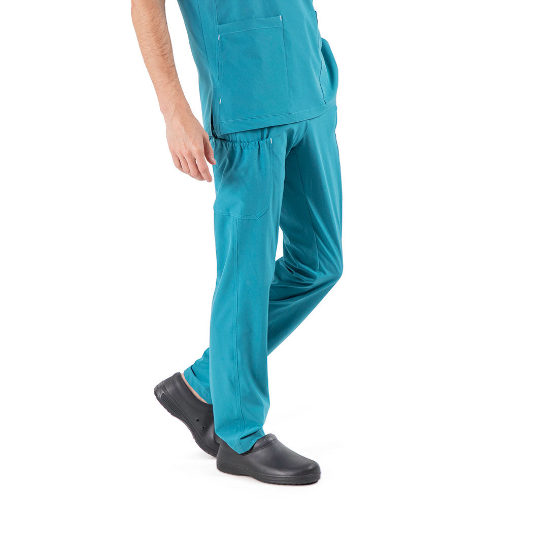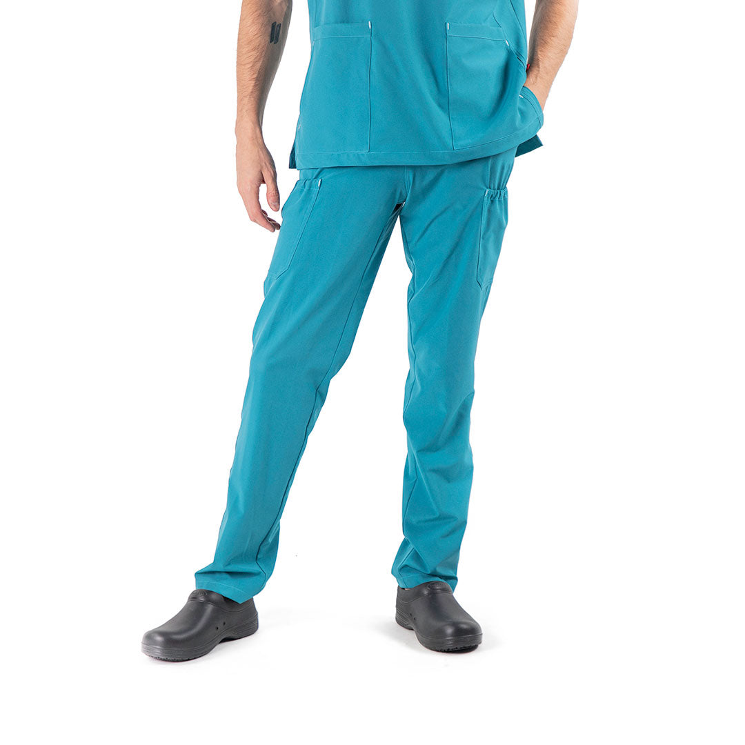 PANTALÓN MÉDICO DE CABALLERO CON CORDÓN AJUSTABLE Y CITURA ELÁSTICA, CON BOLSILLOS CONVENCIONALES EN LATERALES Y TRASEROS. CUENTA TAMBIÉN CON 2 BOLSAS A LOS COSTADOS EN PARTE BAJA CON AJUSTE ELÁSTICO.CONTECCIONADA EN TELA 100% REPELENTE A LÍQUIDOS.