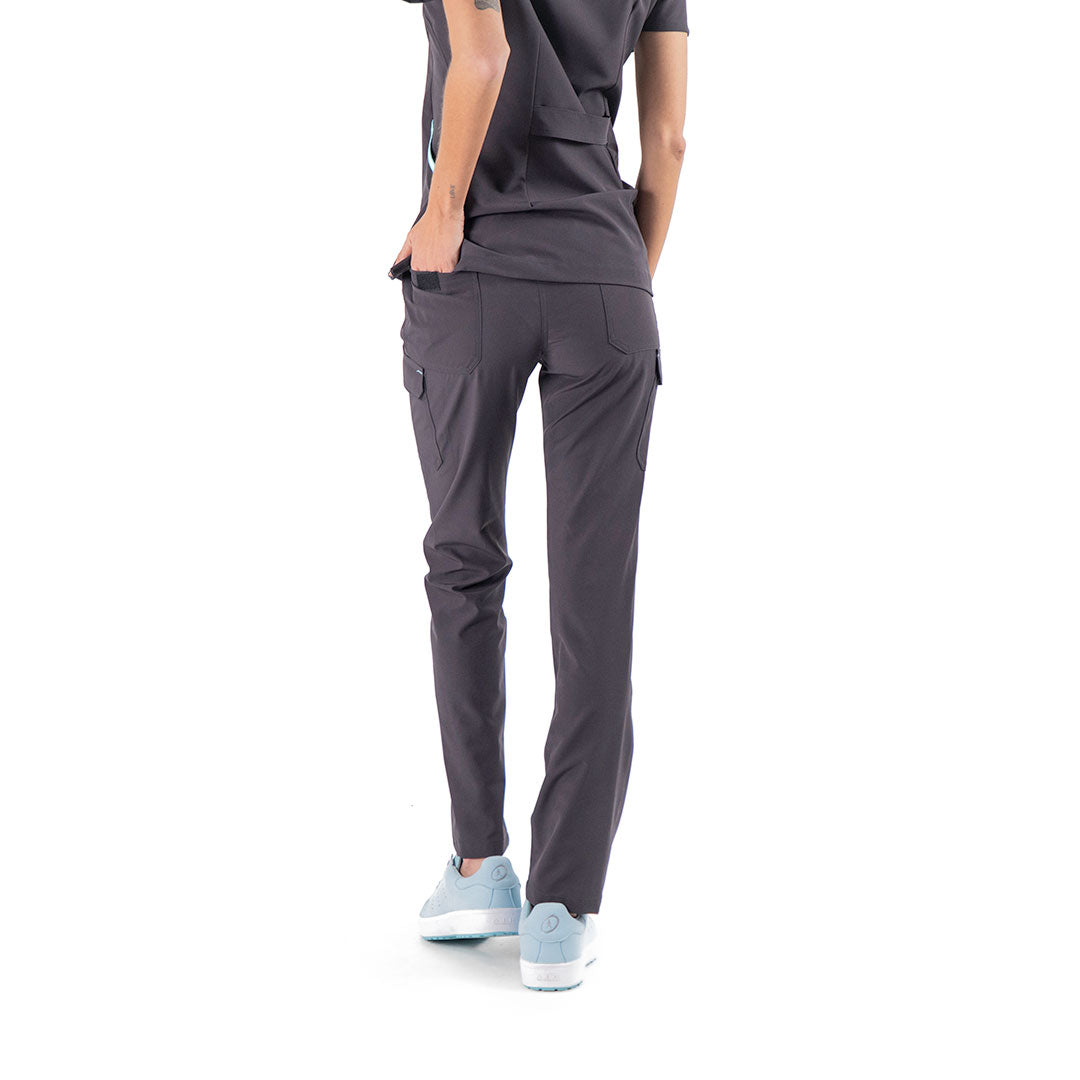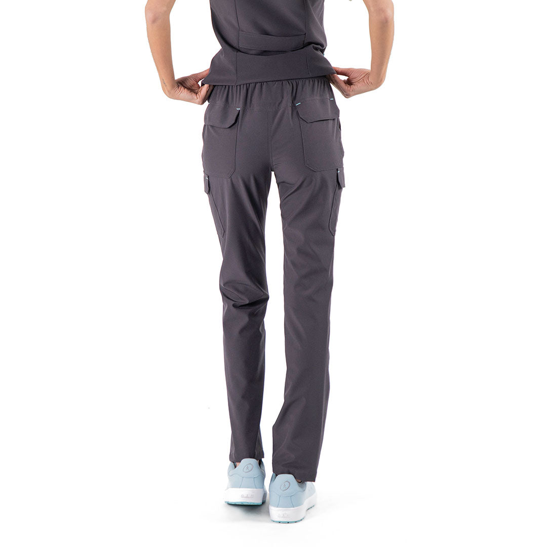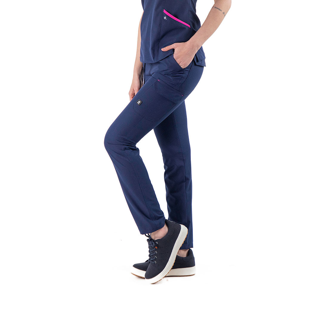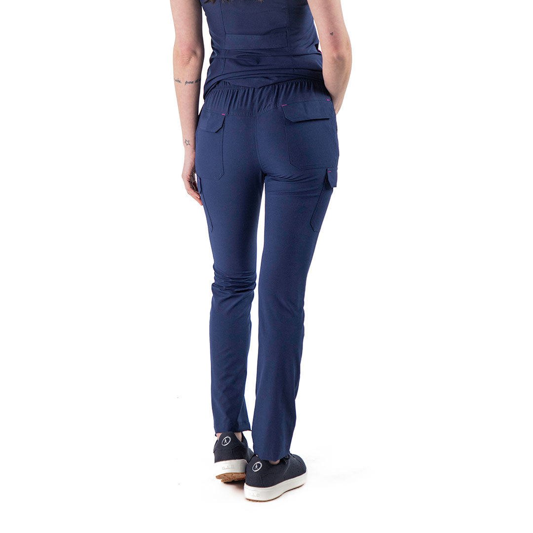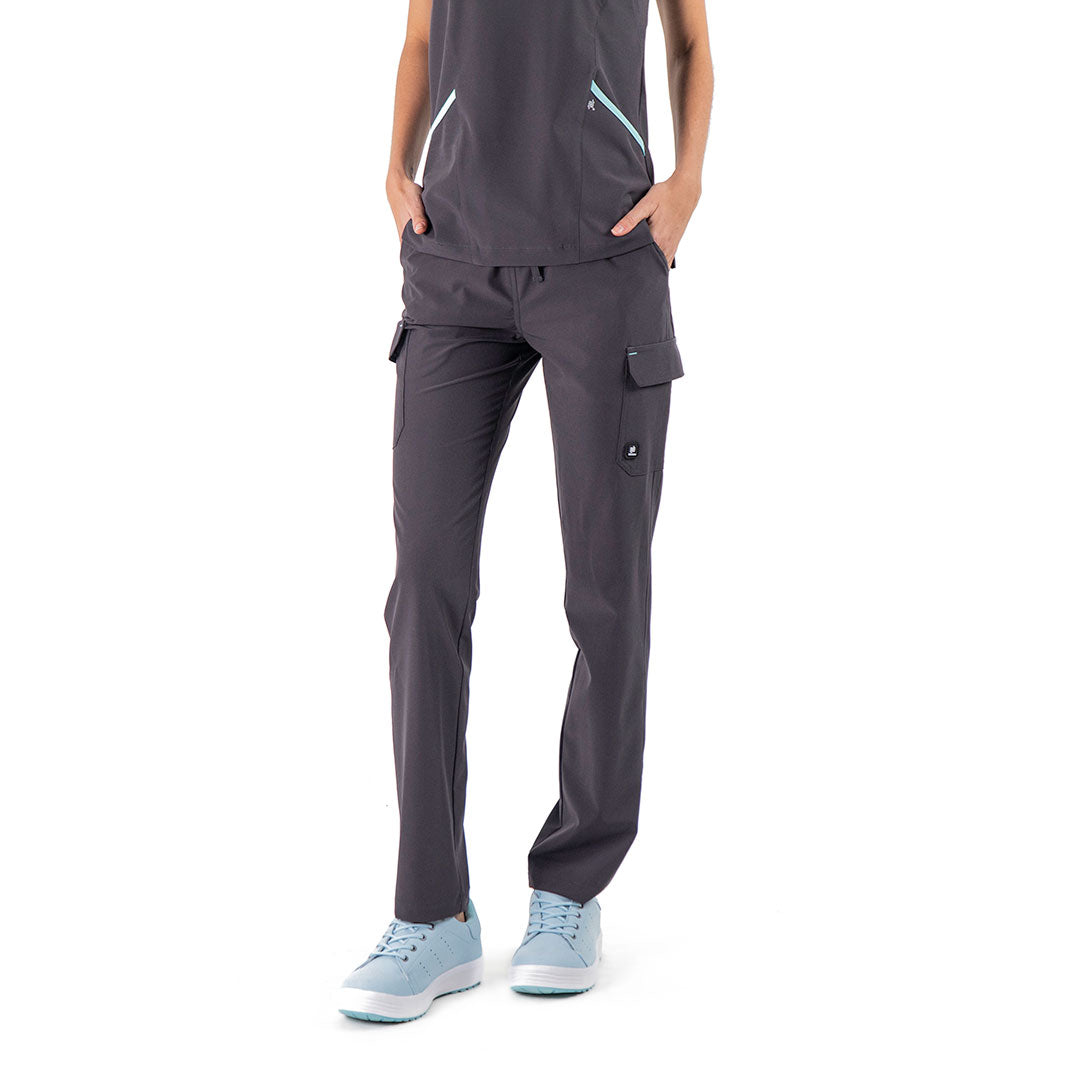PANTALÓN MÉDICO DE DAMA CON AJUSTE MODERNO, CORDÓN AJUSTABLE Y CINTURA ELÁSTICA, CUENTA CON 2 BOLSILLOS DE CARGO EN AMBOS LATERALES Y 2 TRASEROS, ASÍ COMO 2 BOLSILLOS CONVENCIONALES. CONFECCIONADO EN TELA 100% REPELENTE A LÍQUIDOS.