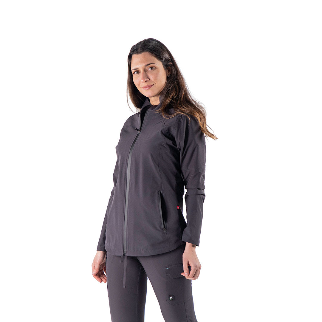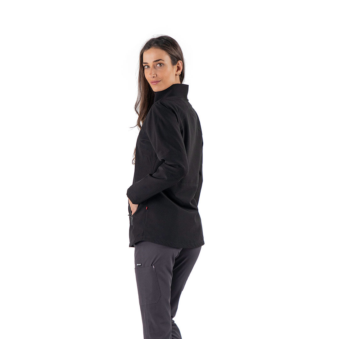 CHAMARRA MÉDICA UNISEX DE AJUSTE MODERNO CON CIERRE FRONTAL, CUENTA CON 2 BOLSILLOS LATERALES CON CIERRE, CONFECCIONADA EN TELA 100% REPELENTE A LÍQUIDOS Y FORRO TÉRMICO LIGERO.