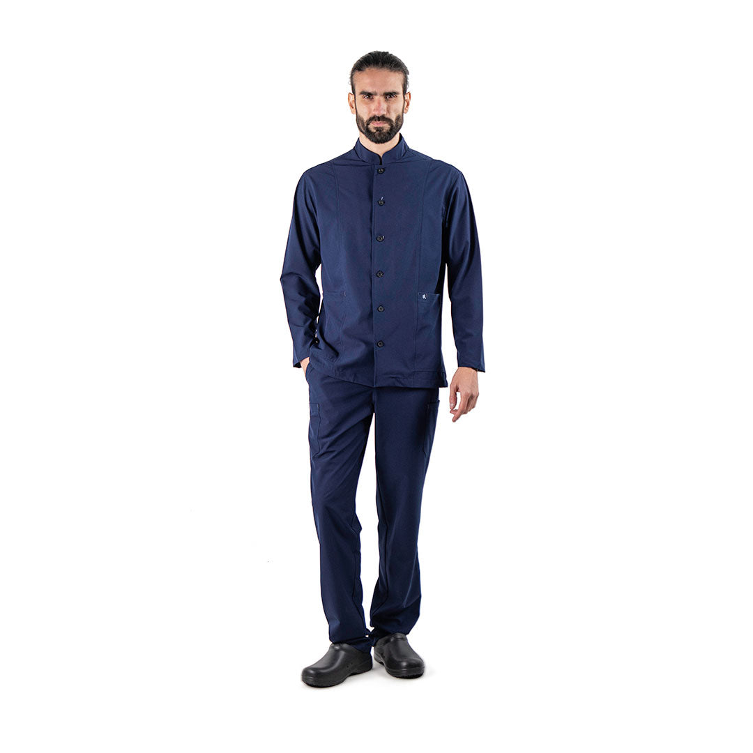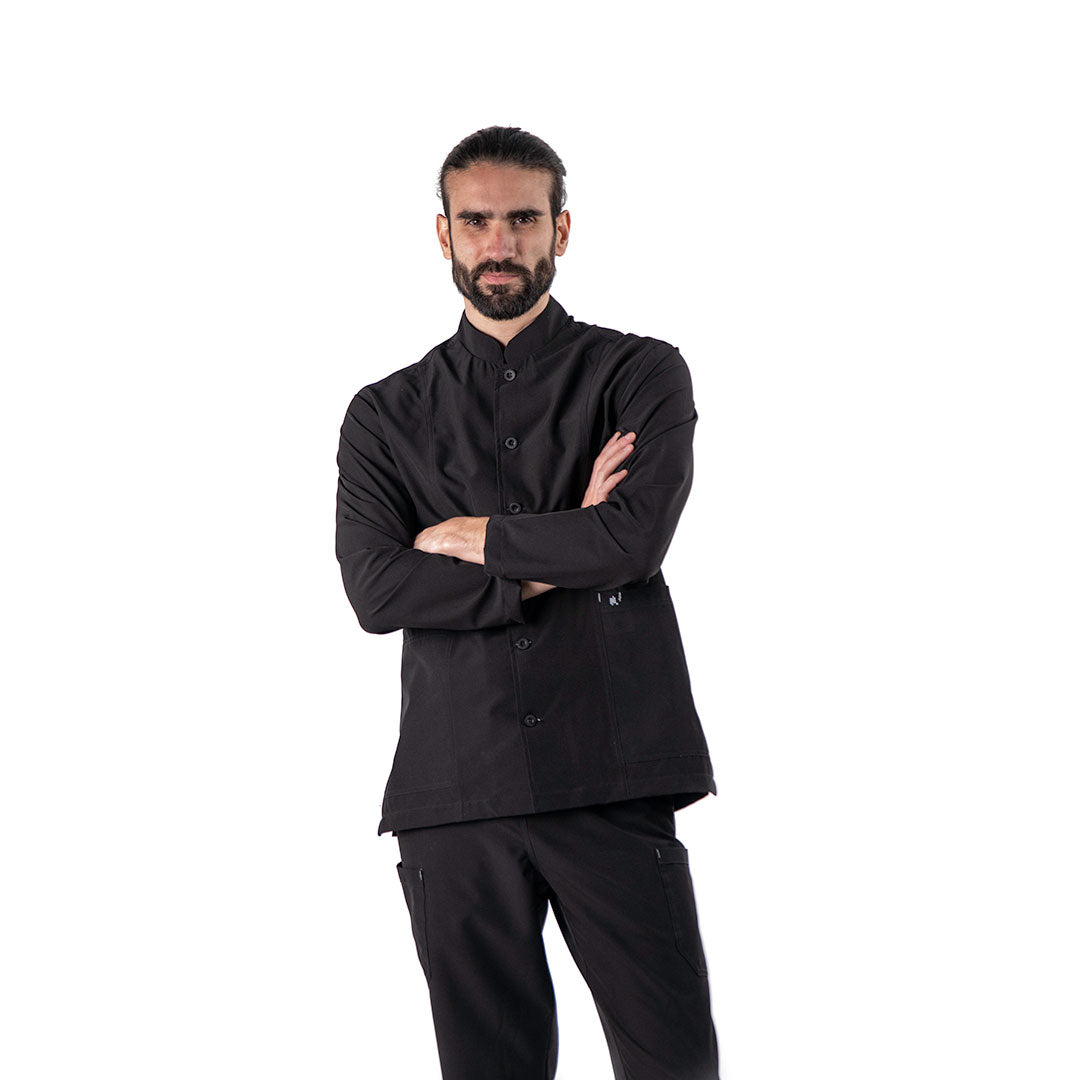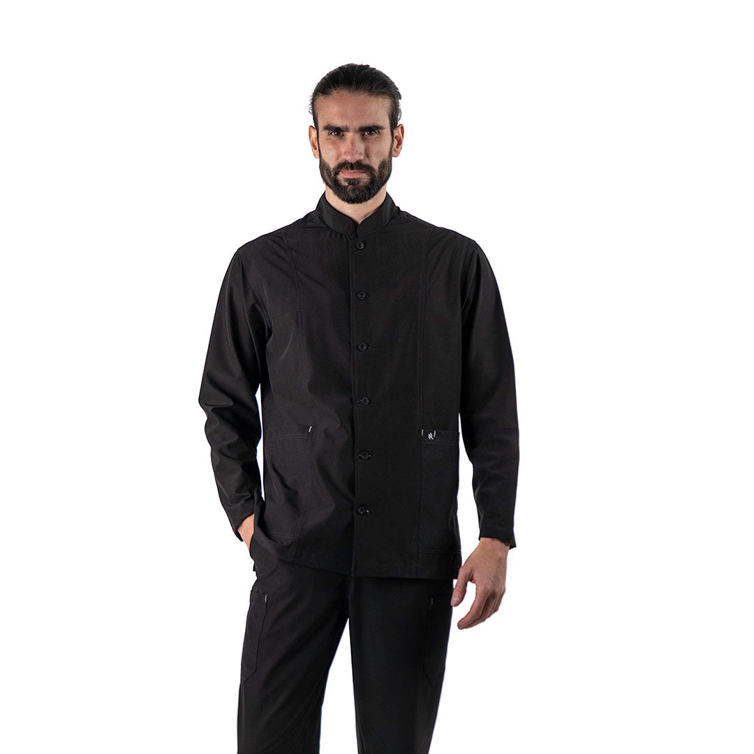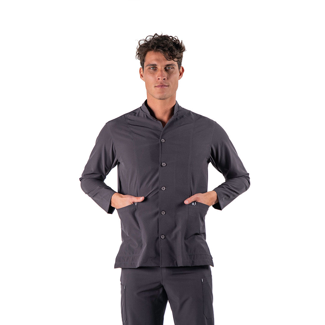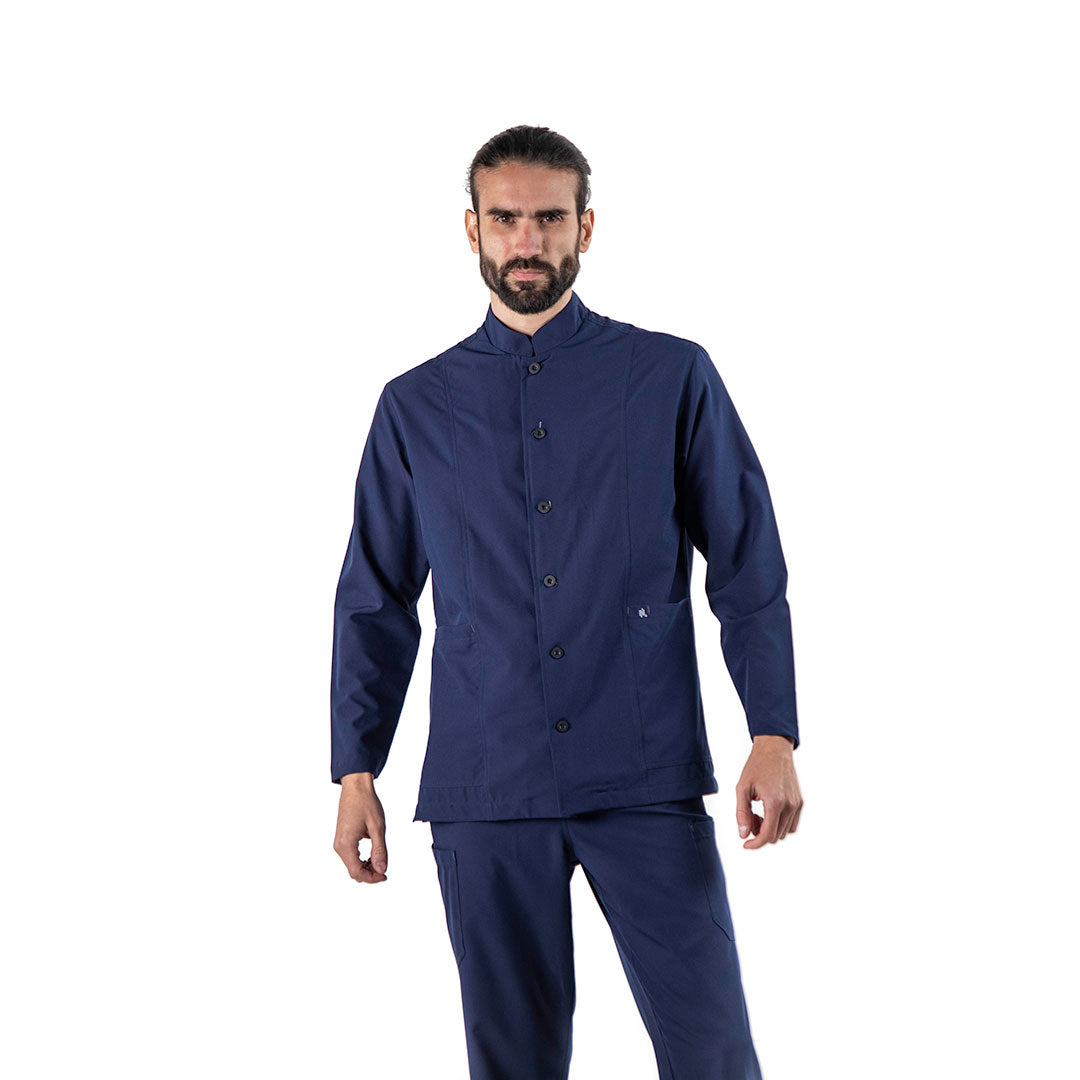 FILIPINA DE CABALLERO PARA SERVICIOS GENERALES, CON CUELLO MAO, BOLSAS FRONTALES EN PARTE BAJA, MANGA 3/4, CIERRE POR MEDIO DE 5 BOTONES